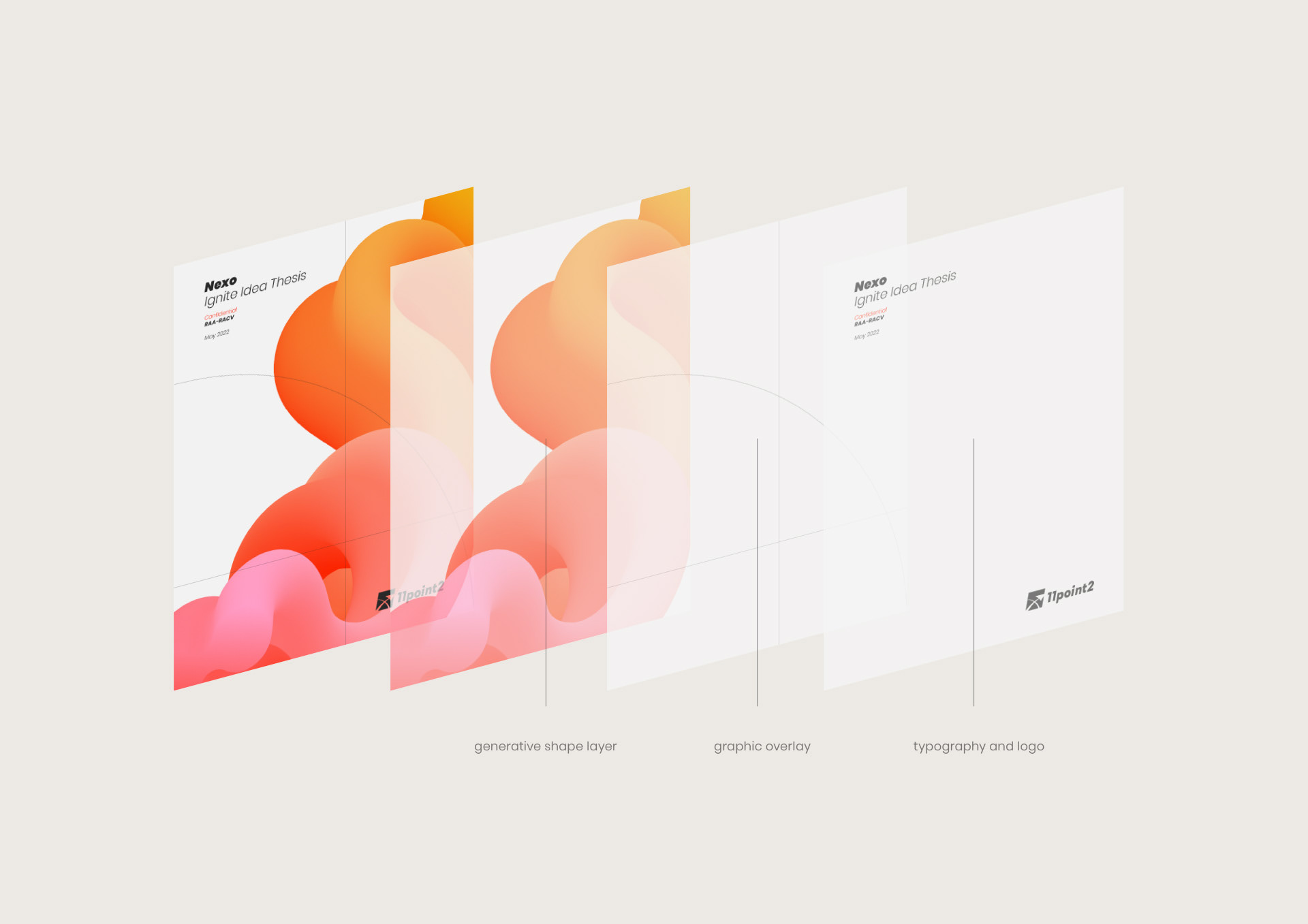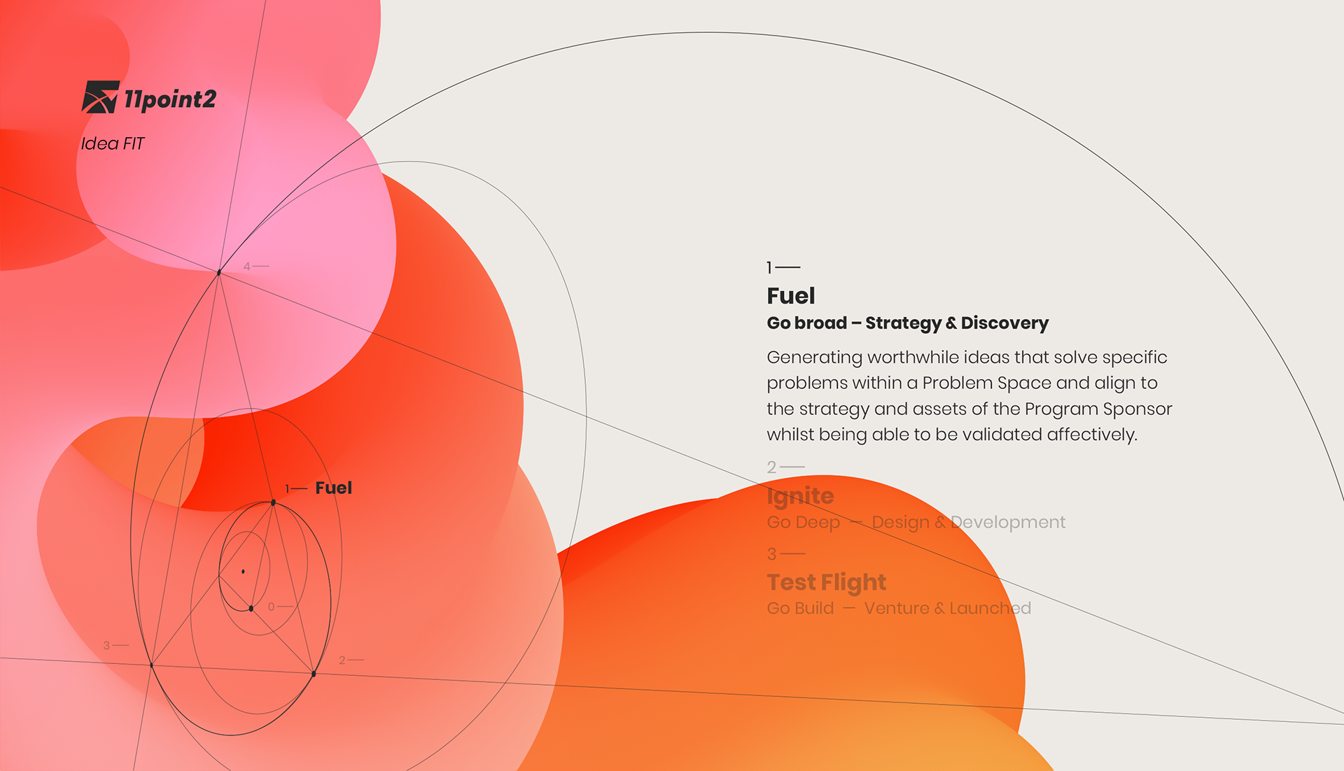 Vibrant, generative 3D shapes are used as a visual expression of the creative and dynamic energy of ideas. Morphing, twisting and flowing, they translate process in to an organic and enigmatic visual language for a business that is focused on validating new ideas and innovating for the future of our society.